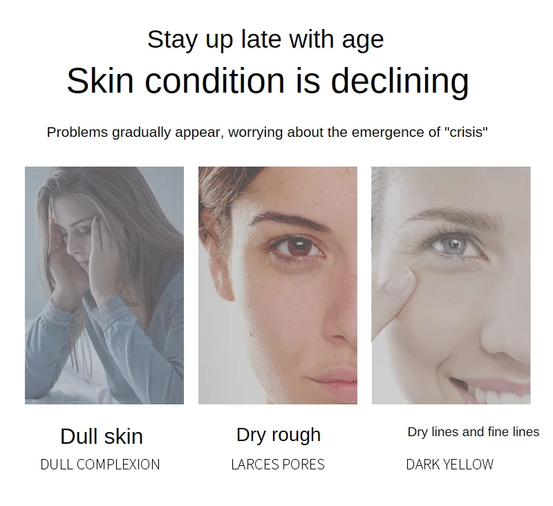 Efficacy: relieve skin dryness, make skin tender and shiny, anti-aging, beautiful complexion, narrow skin pores and make skin more elastic.